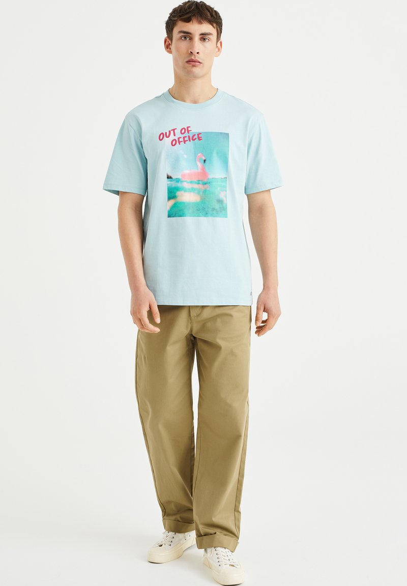 Stay cool and stylish this Spring/Summer with the WE Fashion Man of Style Casual T-shirt in Blue. Perfect for any casual outing, this t-shirt features a trendy print design that adds a touch of personality to your look. Made with high-quality materials, this t-shirt ensures both comfort and style all season long. Upgrade your wardrobe with this must-have piece from WE Fashion.