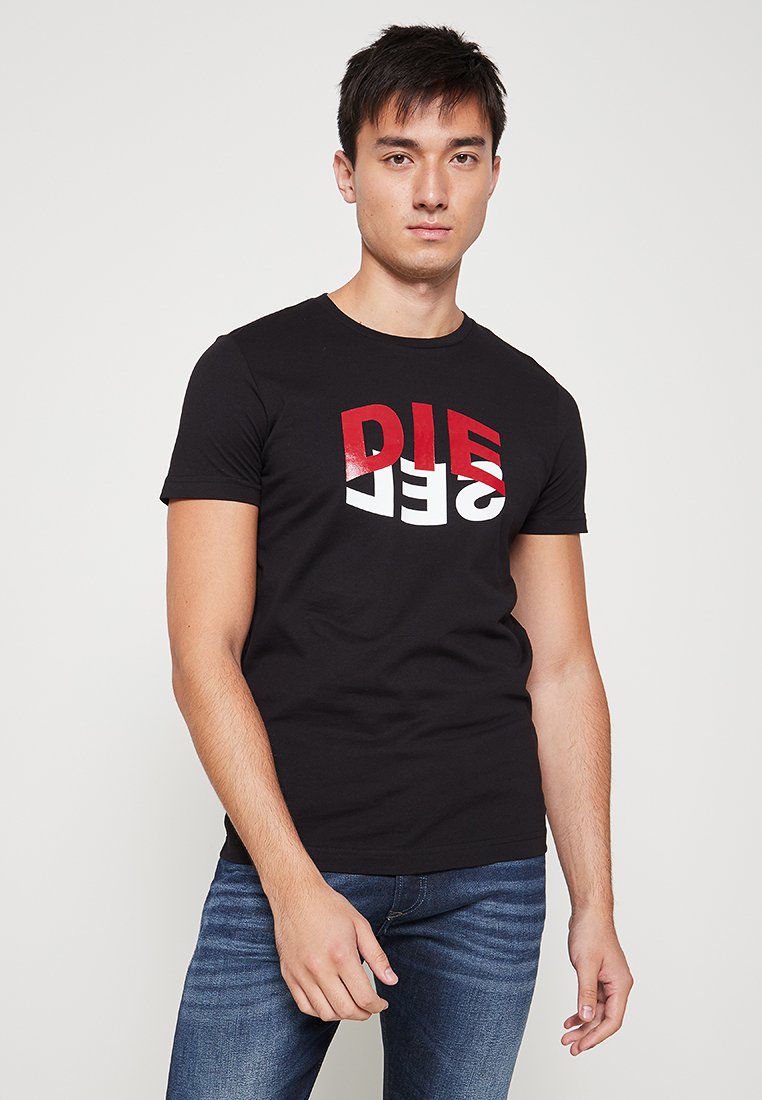 Elevate your casual style with this Diesel Men's T-shirt for the Spring/Summer season. The black color adds a versatile touch to your wardrobe, while the unique print brings a modern edge. Perfect for everyday wear, this t-shirt is a must-have for the fashion-forward man. Add a touch of effortless cool to your outfits with this stylish piece.