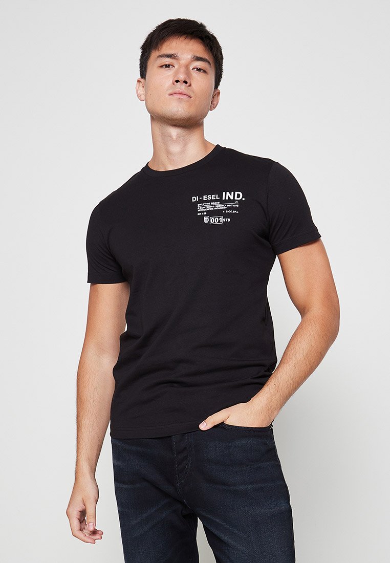Elevate your casual style with this Diesel Men's T-shirt for the Spring/Summer season. The black color adds a versatile touch to your wardrobe, while the unique print brings a modern edge. Perfect for everyday wear, this t-shirt is a must-have for the fashion-forward man. Add a touch of effortless cool to your outfits with this stylish piece.