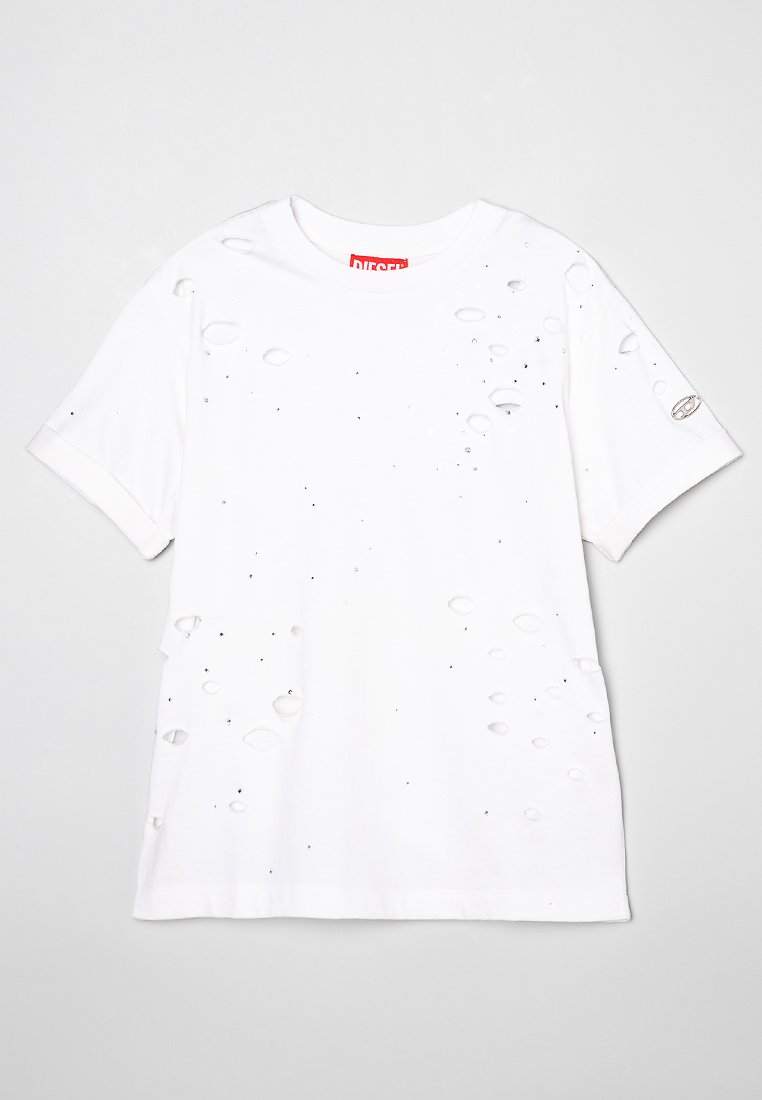 Elevate your casual style with this Diesel Man of Style Casual T-shirt. Perfect for the Spring/Summer season, this white tee features a stylish print that will effortlessly upgrade your look. Made from high-quality materials, this shirt is both comfortable and fashionable. Add a touch of Diesel's signature edgy aesthetic to your wardrobe with this must-have piece.