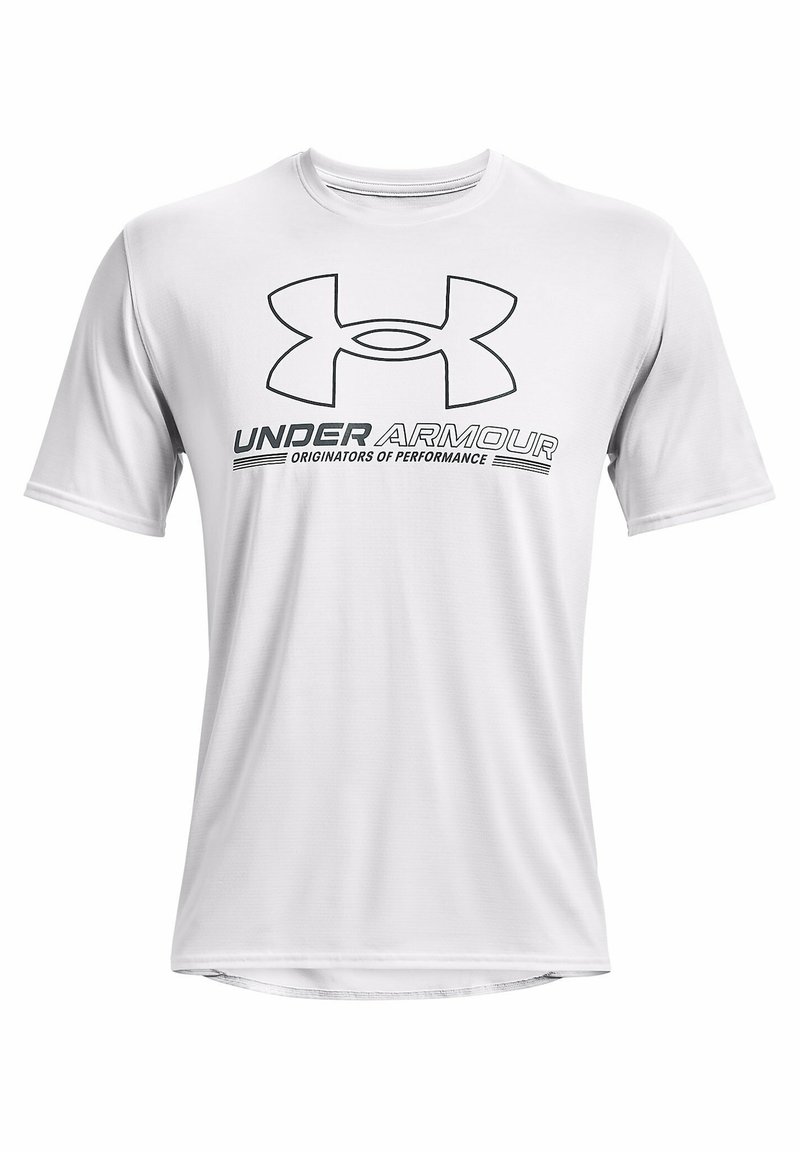 Stay cool and stylish this Spring/Summer with this white T-shirt from Under Armour. Made for the man of style, this casual tee features a sleek design and comfortable fit. Whether you're hitting the gym or just hanging out, this T-shirt with print is the perfect addition to your wardrobe. Upgrade your look with Under Armour.
