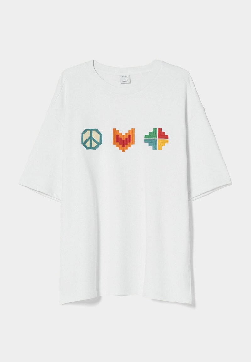 Stay cool and stylish this Spring/Summer with the Bershka Men's Casual T-shirt in crisp White. Featuring a trendy print, this tee is perfect for any casual occasion. Made from comfortable fabric, this shirt is a must-have for the fashion-forward man. Upgrade your wardrobe with this versatile and on-trend piece.