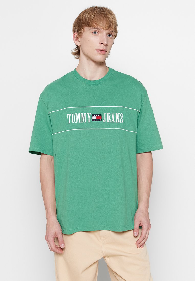 Elevate your casual style with this Tommy Jeans T-shirt for Men in a fresh green color perfect for the Spring/Summer season. Featuring a stylish print, this tee is ideal for a laid-back yet fashionable look. Made from high-quality materials, it offers both comfort and style for any occasion. Add a touch of cool, contemporary flair to your wardrobe with this must-have piece.