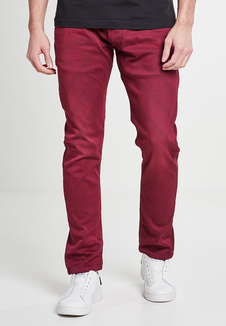 Stay comfortable and stylish this Autumn/Winter with Diesel's Casual Tapered Fit Jeans in a bold red color. These versatile pants are perfect for everyday wear and can easily be dressed up or down. Made from high-quality materials, they offer a modern and trendy look that will keep you feeling confident all season long. Upgrade your wardrobe with these must-have red jeans from Diesel.