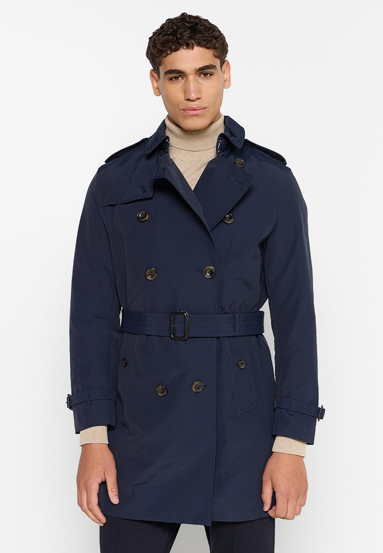 Stay stylish and sophisticated in the Spring/Summer season with this Casual/Elegant trench coat from Hackett London. The timeless design in a classic blue hue adds a touch of sophistication to any outfit. Perfect for layering over your favorite shirt or sweater, this versatile piece is sure to elevate your look. Make a statement with this must-have wardrobe staple for the modern man of style.