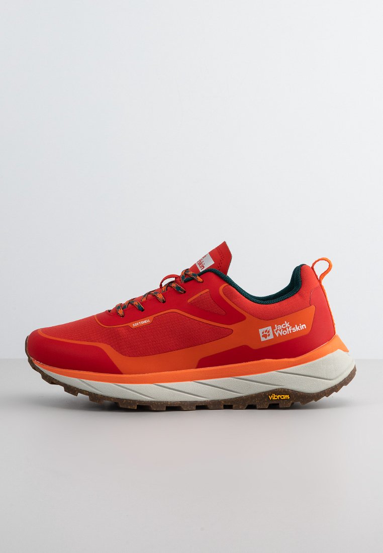 Stay stylish and comfortable this Spring/Summer with Jack Wolfskin's casual men's walking shoes in a vibrant orange hue. Perfect for outdoor adventures or everyday wear, these shoes blend durability with a trendy design. Enjoy the lightweight feel and reliable traction as you explore the great outdoors in these eye-catching Jack Wolfskin walking shoes. Elevate your footwear game with this must-have addition to your collection.