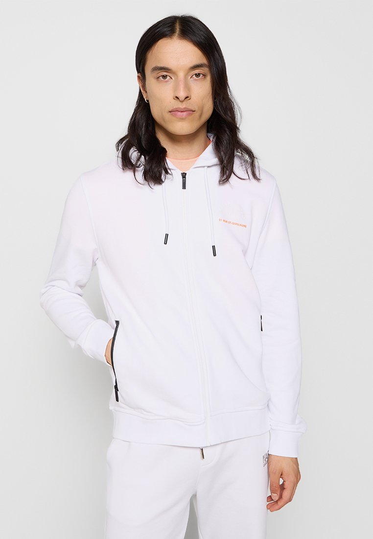 Stay cozy and stylish this Autumn/Winter season with the Karl Lagerfeld Hoodie for Men. In a crisp white color, this casual zip-up hoodie is the perfect addition to any man's wardrobe. With a trendy design and the iconic Karl Lagerfeld logo, this hoodie combines comfort and fashion effortlessly. Elevate your street style with this must-have piece.