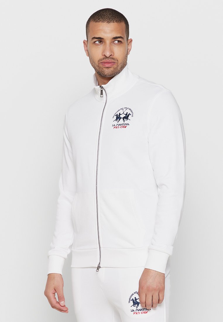 Stay cozy and stylish this season with the LA MARTINA Casual Man's Zip-Up Hoodie. This white hoodie is perfect for the Autumn/Winter weather, keeping you warm and on-trend. The zip-up design adds a modern touch, while the LA MARTINA branding adds a touch of luxury. Whether you're running errands or hanging out with friends, this hoodie will elevate your casual look effortlessly.