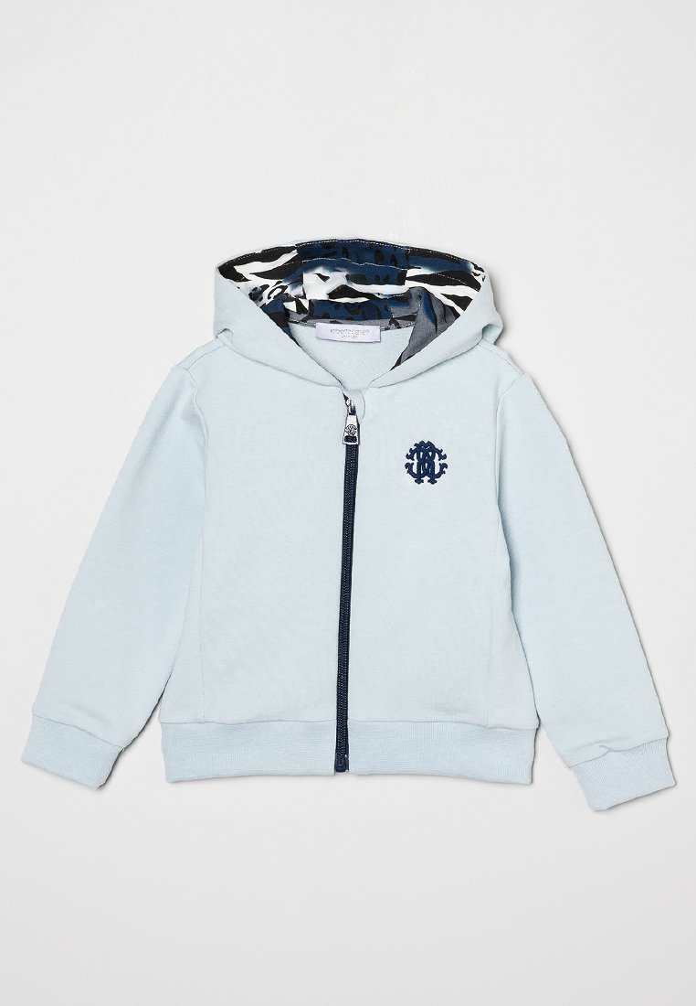 Introducing the Roberto Cavalli Junior Casual Hoodie for Men, perfect for the Autumn/Winter season. This stylish hoodie comes in a trendy blue color, featuring a convenient zip design. Stay warm and fashionable with this must-have addition to your wardrobe.