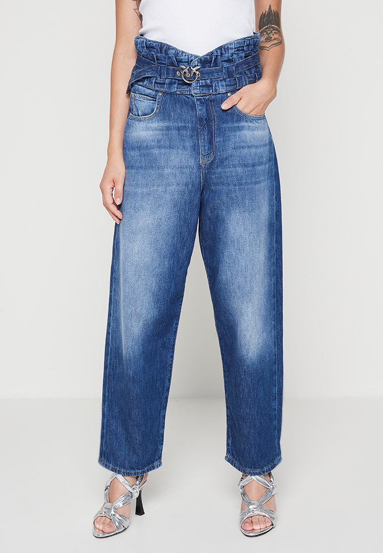 Stay cozy and stylish this Autumn/Winter season with the Blue Baggy Jeans from Pinko. These casual pants for women are perfect for everyday wear, offering a relaxed fit and a trendy look. Pair them with a chunky sweater or a sleek blouse for a versatile and chic outfit. Upgrade your wardrobe with these must-have blue jeans from Pinko.