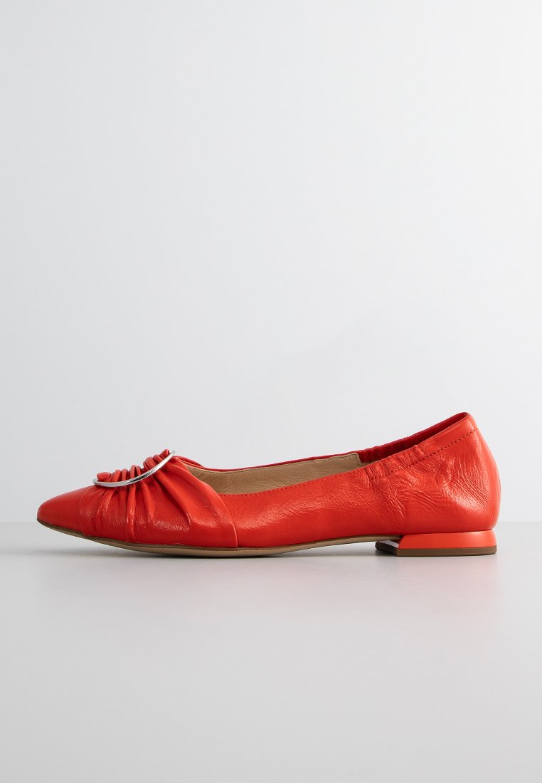 Elevate your spring/summer wardrobe with these stylish Casual/Elegant women's ballerina flats from the brand Högl. The vibrant orange color adds a pop of color to any outfit, while the comfortable design makes them perfect for all-day wear. Whether you're running errands or heading to a lunch date, these versatile shoes will keep you looking chic and feeling confident. Upgrade your shoe collection with these must-have flats that seamlessly blend fashion and comfort.