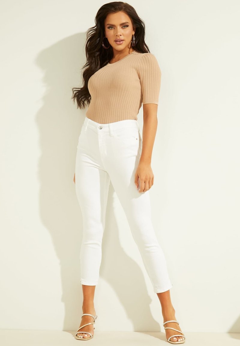 Stay effortlessly chic in this Guess Women's Casual T-shirt for Spring/Summer. In a soft beige hue, this basic tee is perfect for everyday wear. Featuring a relaxed fit and comfortable fabric, it is a must-have staple for your wardrobe. Elevate your casual style with this versatile and timeless piece.