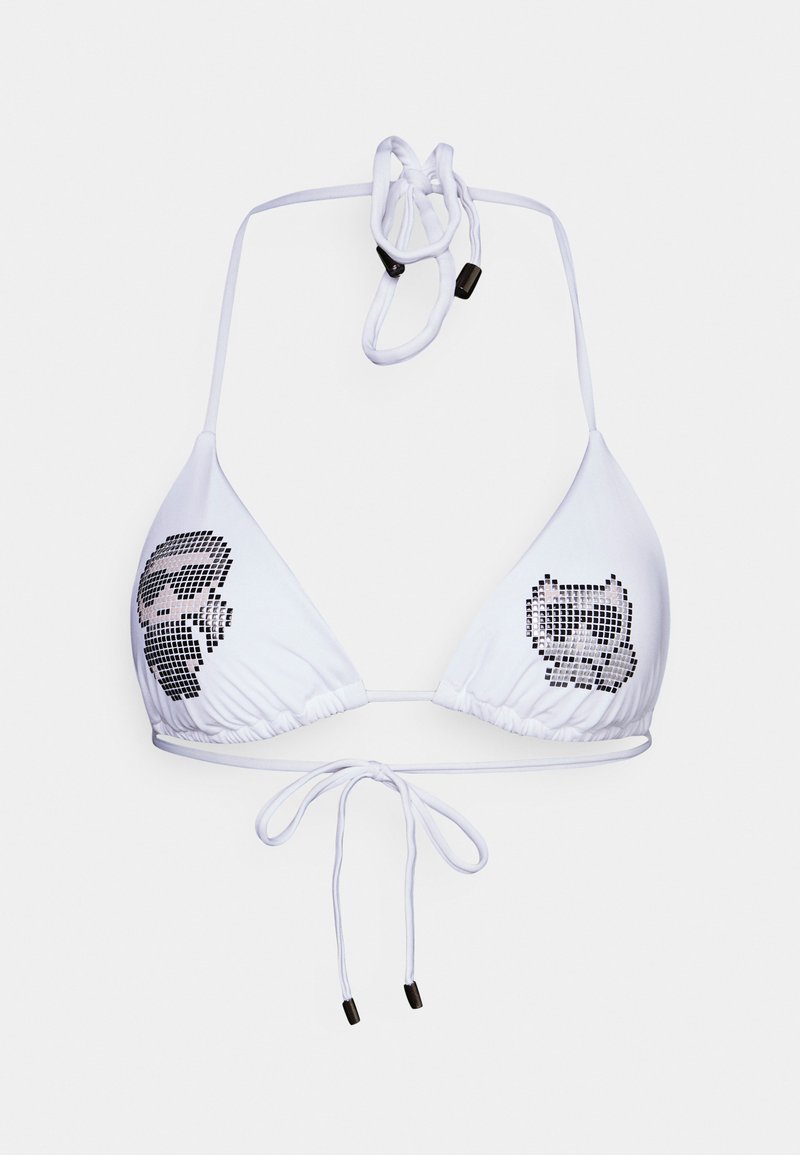 This sophisticated Karl Lagerfeld bikini top is perfect for the fashion-forward woman who loves to blend casual and elegant styles. Designed in a crisp white hue, it is ideal for the warmer Spring/Summer seasons. Pair this versatile piece with matching bottoms for a chic and timeless look that will surely turn heads.