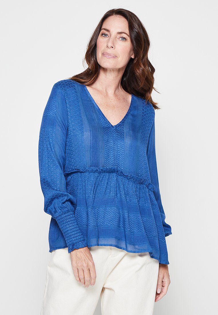 Stay cool and stylish in this Casual/Elegant blue blouse from SUMMERY Copenhagen. Perfect for the Spring/Summer season, this versatile piece exudes effortless chic. Pair it with jeans for a laid-back look or dress it up with a skirt for a more refined ensemble. The perfect addition to any woman's wardrobe.