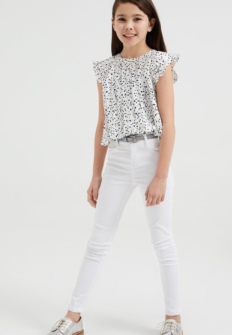 Look effortlessly chic in this casual yet elegant white blouse from WE Fashion. Perfect for the Spring/Summer season, this versatile piece can be dressed up or down for any occasion. Made from high-quality materials, this blouse is a must-have addition to any woman's wardrobe. Stay stylish and comfortable all day long in this stylish WE Fashion camicetta.