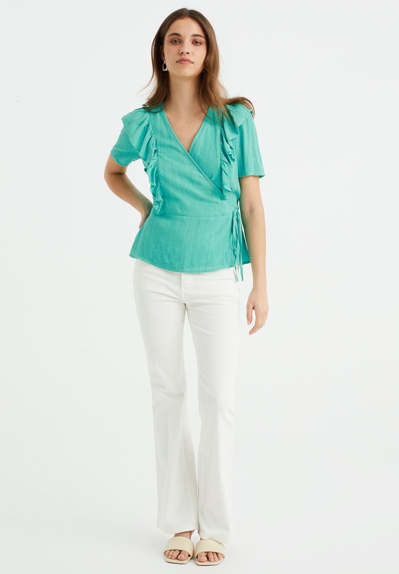 Get ready for the warmer seasons with this versatile Casual/Elegant Women's blouse from WE Fashion. The Multi color palette adds a fun pop to any outfit, making it perfect for Spring/Summer. The camicetta features a flattering fit and can be easily dressed up or down for any occasion. Stay stylish and comfortable all season long with this must-have wardrobe essential.