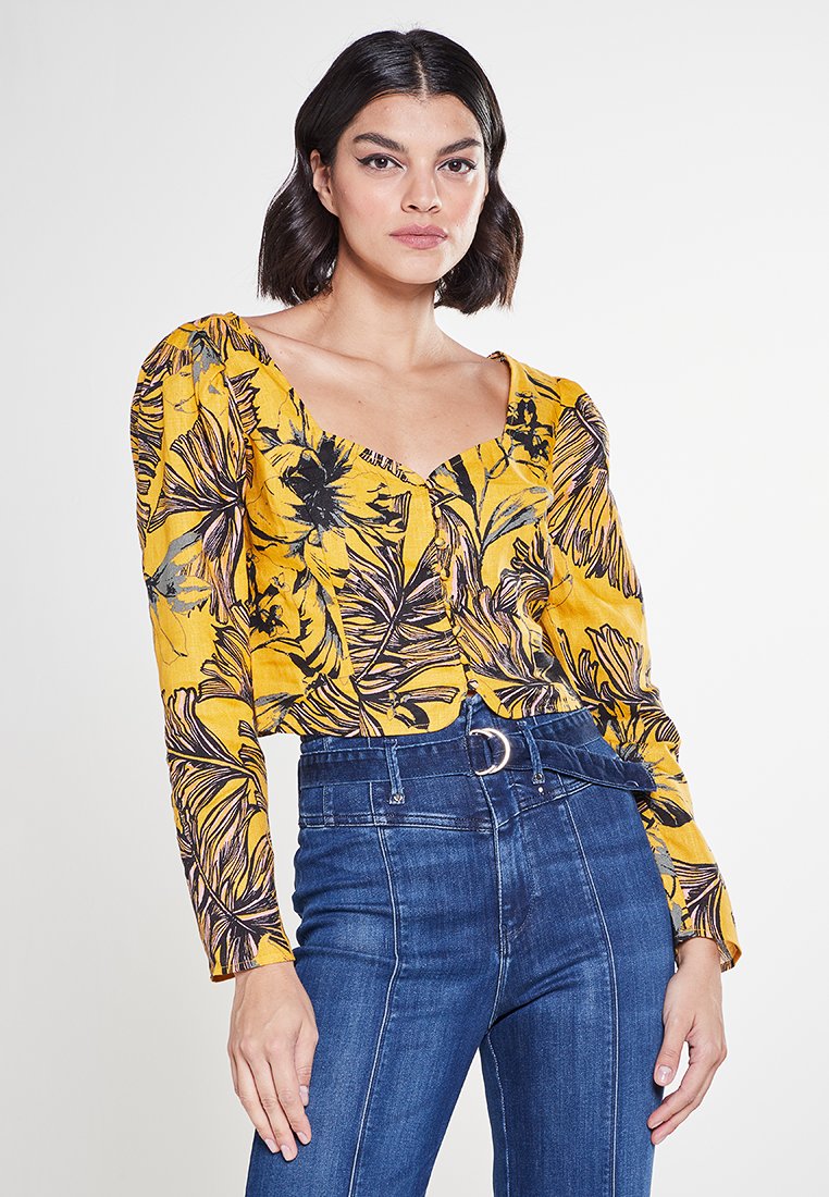 Elevate your Spring/Summer wardrobe with this casual yet elegant Guess women's blouse in a vibrant yellow hue. Perfect for adding a pop of color to your outfit, this versatile piece is ideal for both day-to-night looks. With its flattering silhouette and stylish design, this blouse is a must-have for the fashion-forward woman. Stay chic and on-trend with this Guess blouse that effortlessly combines style and comfort.