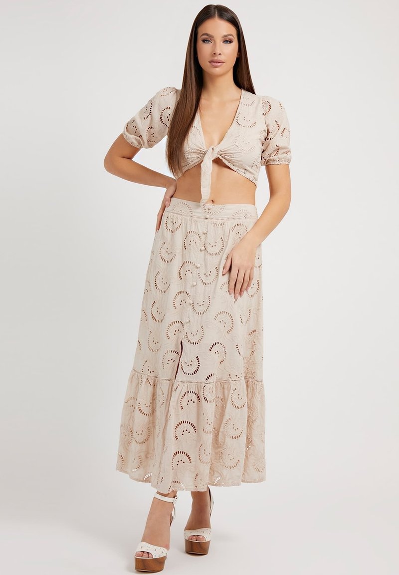 This beige Guess blouse is perfect for the spring/summer season. With its casual yet elegant style, it is versatile for any occasion. The camicetta features a flattering fit and a touch of sophistication, making it a must-have in every woman's wardrobe. Stay chic and stylish with this timeless piece.