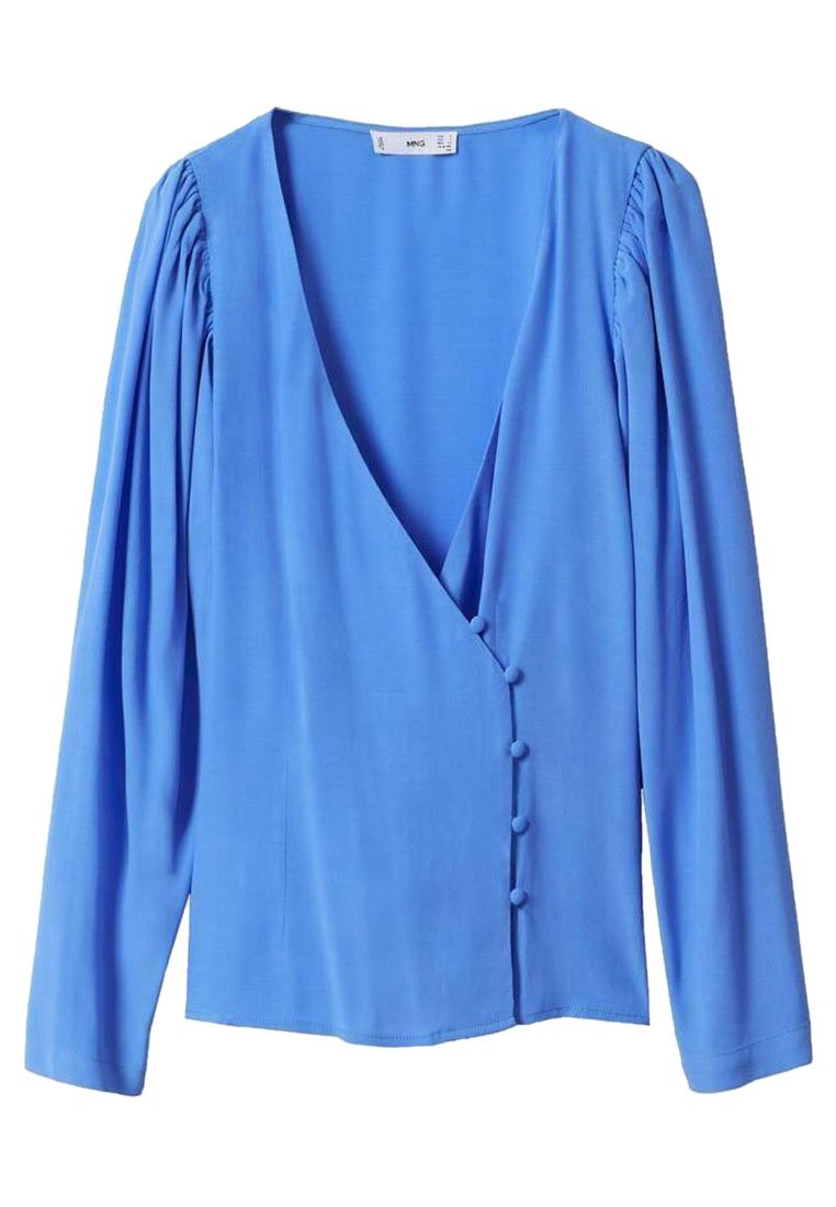 Introducing the Blue Casual/Elegant Women's Blouse from Mango, perfect for the Spring/Summer season. This versatile piece combines comfort and sophistication, making it a wardrobe essential. The soft blue color adds a fresh touch to any look, whether paired with jeans for a casual outing or dressed up with trousers for a more elegant occasion. Elevate your style with this timeless blouse from Mango.