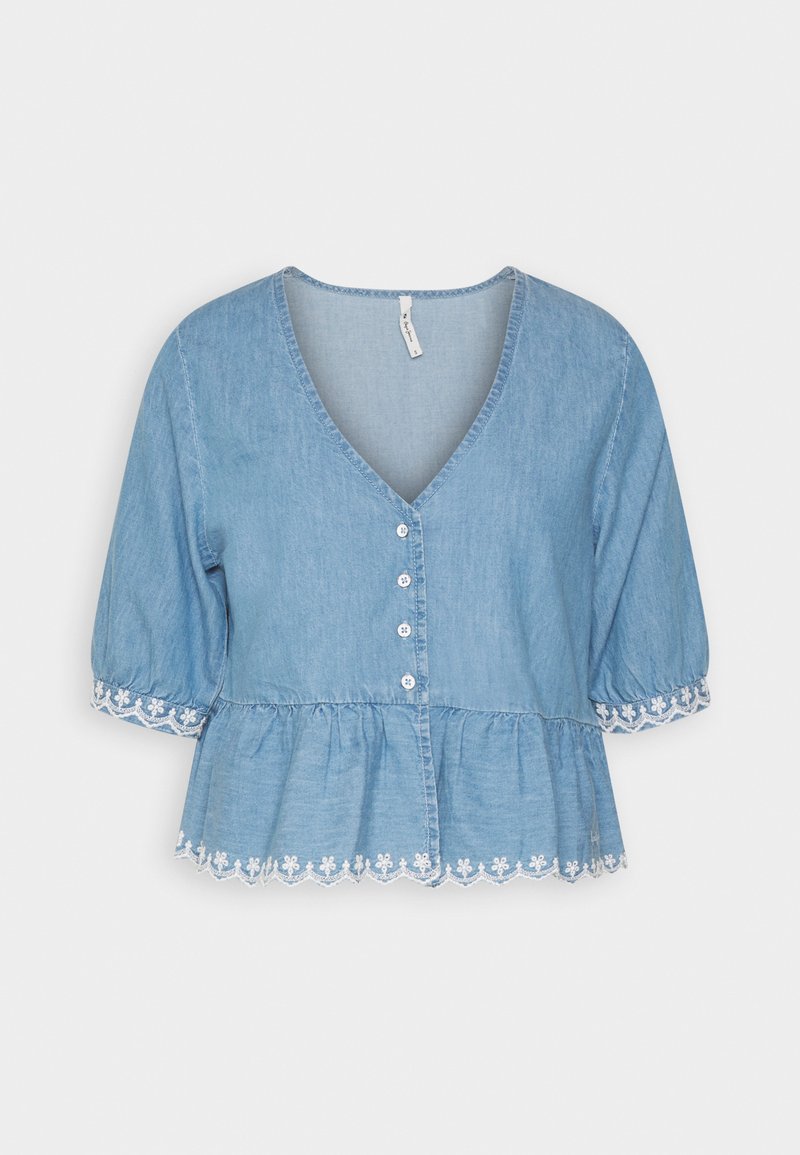 Introducing the Pepe Jeans Blue Casual/Elegant Women's Blouse, perfect for the Spring/Summer season. This versatile piece can be dressed up or down for any occasion. Made with high-quality materials and a chic design, it is a must-have for your wardrobe. Stay stylish and comfortable all season long in this classic blue blouse.