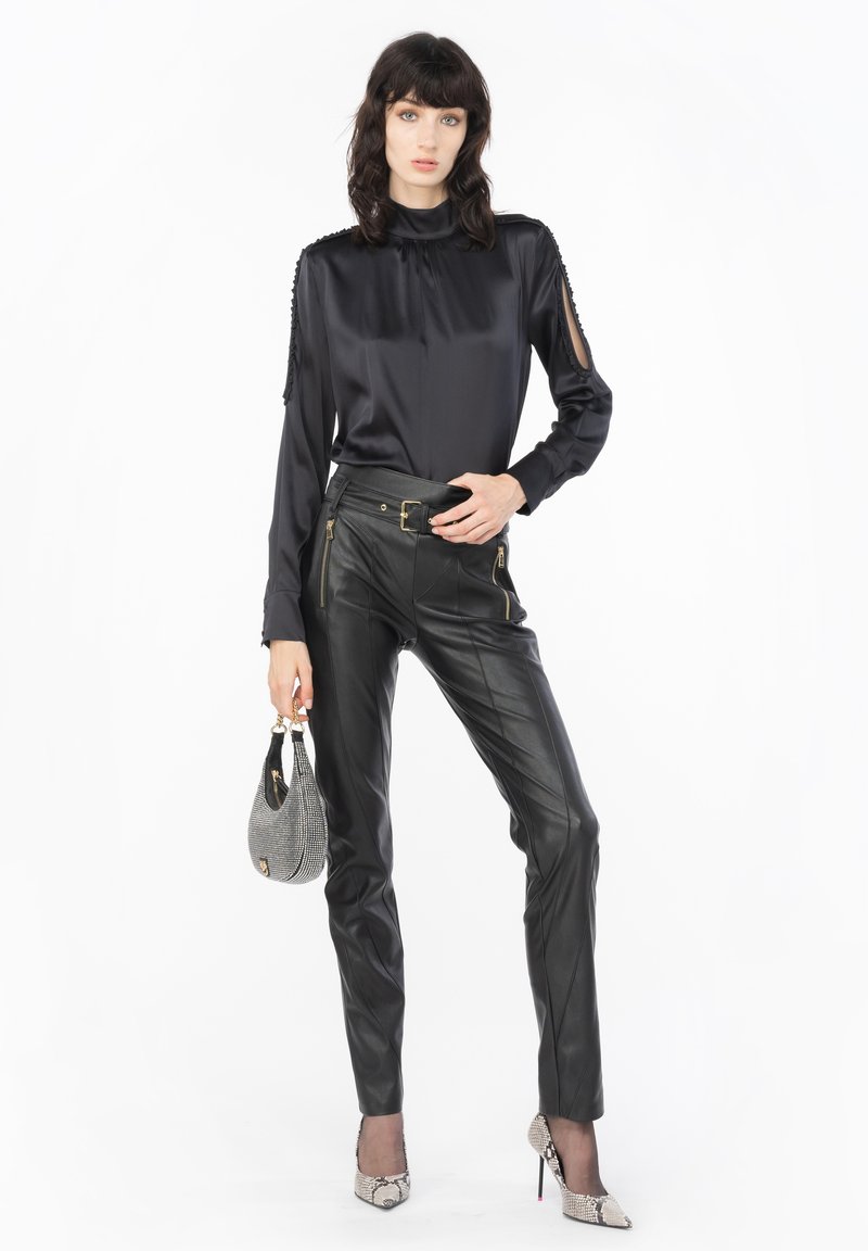 Elevate your Spring/Summer wardrobe with this Black casual yet elegant blouse from Pinko. Perfect for any occasion, this versatile piece from the Women's collection effortlessly combines style and comfort. The blouse features a flattering silhouette and can be easily dressed up or down for a chic look. Add a touch of sophistication to your outfit with the Pinko Camicetta blouse.