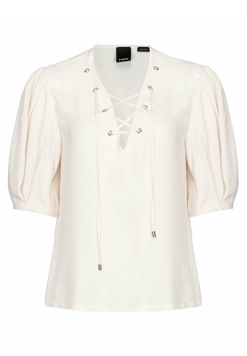 Stay effortlessly chic in this Pinko blouse for women. Perfect for the warmer months, this casual yet elegant piece in a lovely shade of pink is ideal for any spring or summer occasion. Made with high-quality materials, this blouse is versatile enough to be dressed up or down, making it a must-have item for your wardrobe. Add a touch of feminine charm to your look with this stylish Pinko blouse.