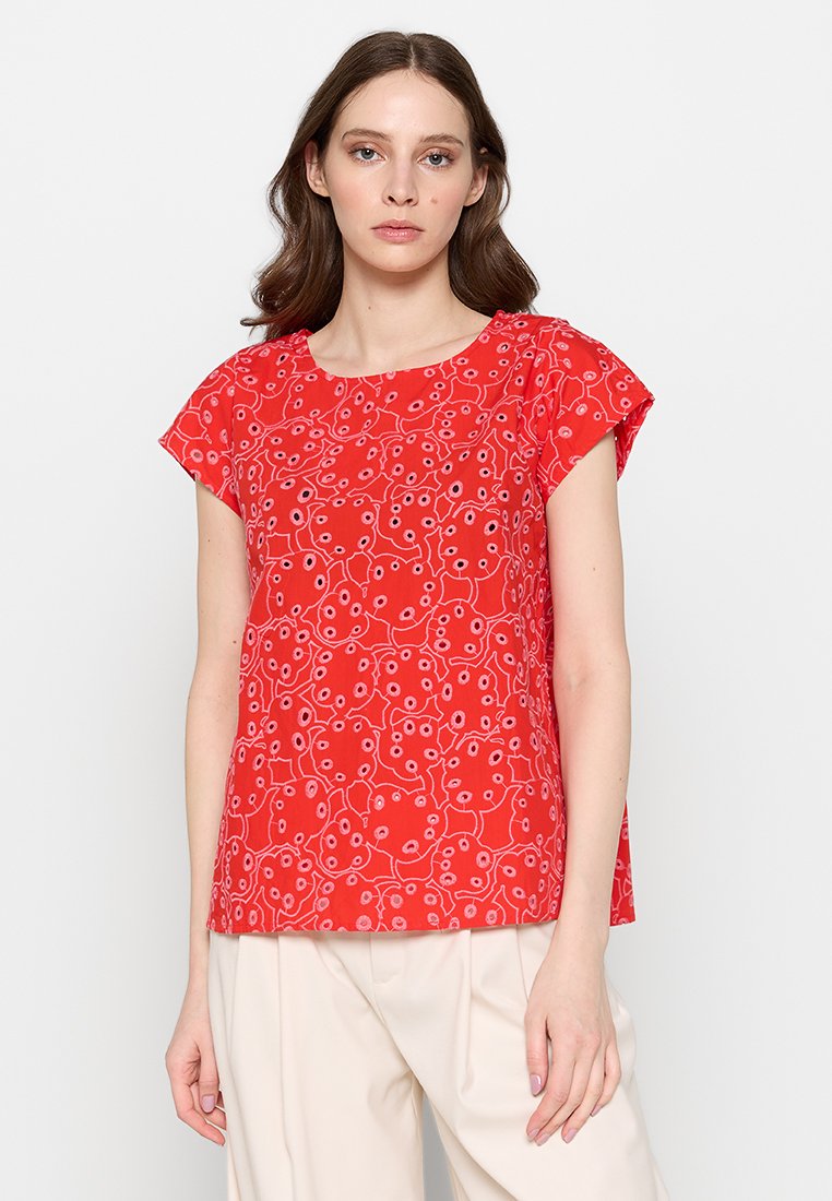 Introducing the Marimekko Casual/Elegant Women's Blouse in a vibrant Red hue. This versatile piece is perfect for the Spring/Summer season. With its effortless style and elegant design, this blouse is an essential addition to any wardrobe. Embrace a chic and stylish look with this must-have top from Marimekko.