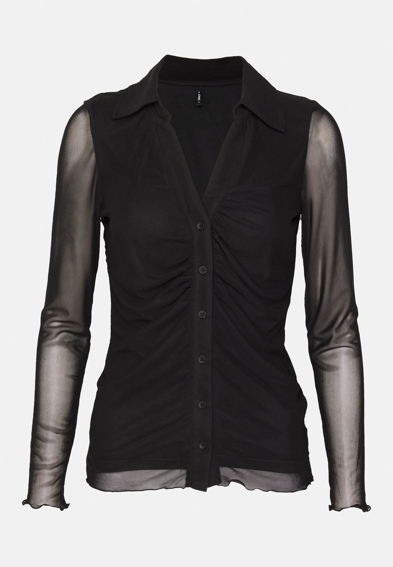 Introducing the Only casual/elegant women's blouse, perfect for the spring/summer season. This stylish black blouse is versatile and can be dressed up or down for any occasion. The flowy fit and sophisticated design make it a must-have piece for your wardrobe. Stay chic and comfortable in this timeless staple from Only.