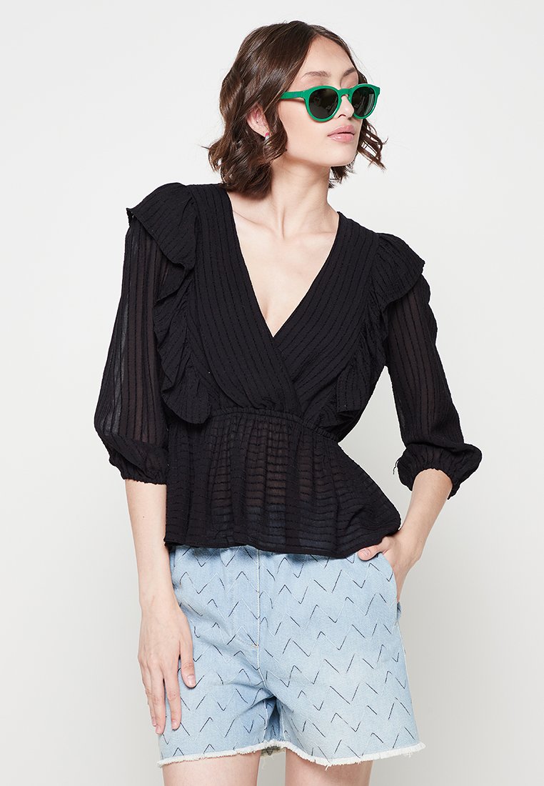 Introducing the Only casual/elegant women's blouse, perfect for the spring/summer season. This stylish black blouse is versatile and can be dressed up or down for any occasion. The flowy fit and sophisticated design make it a must-have piece for your wardrobe. Stay chic and comfortable in this timeless staple from Only.