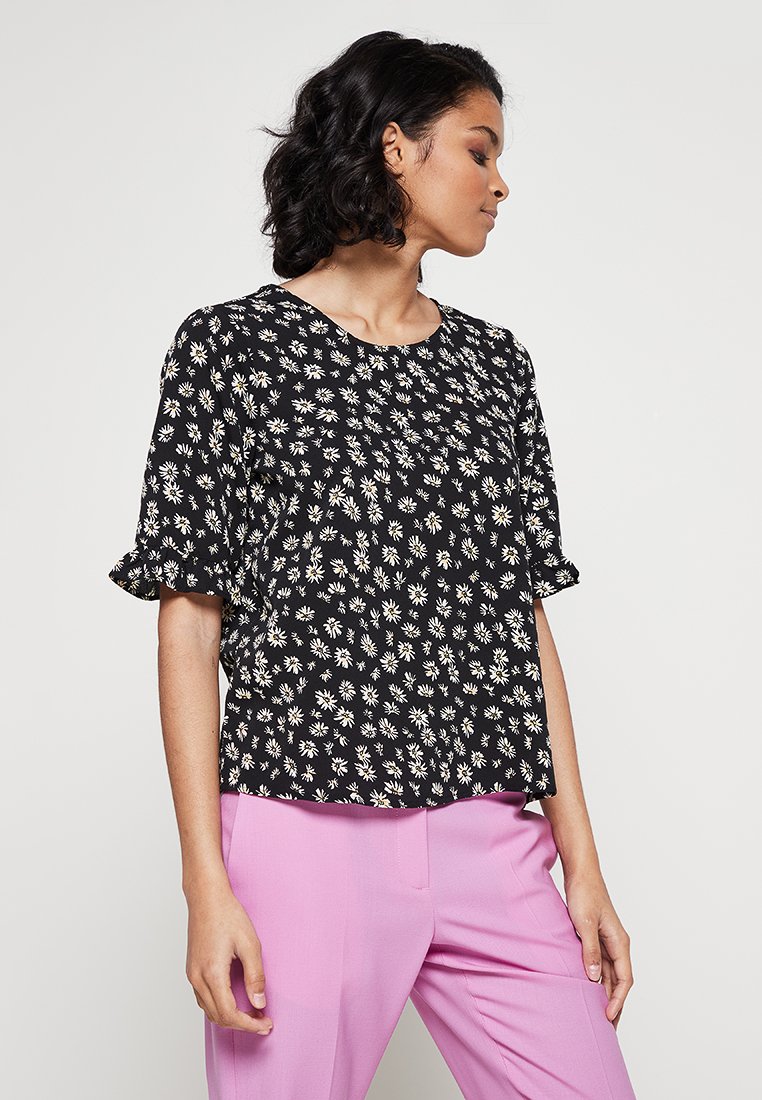 Introducing the Only casual/elegant women's blouse, perfect for the spring/summer season. This stylish black blouse is versatile and can be dressed up or down for any occasion. The flowy fit and sophisticated design make it a must-have piece for your wardrobe. Stay chic and comfortable in this timeless staple from Only.