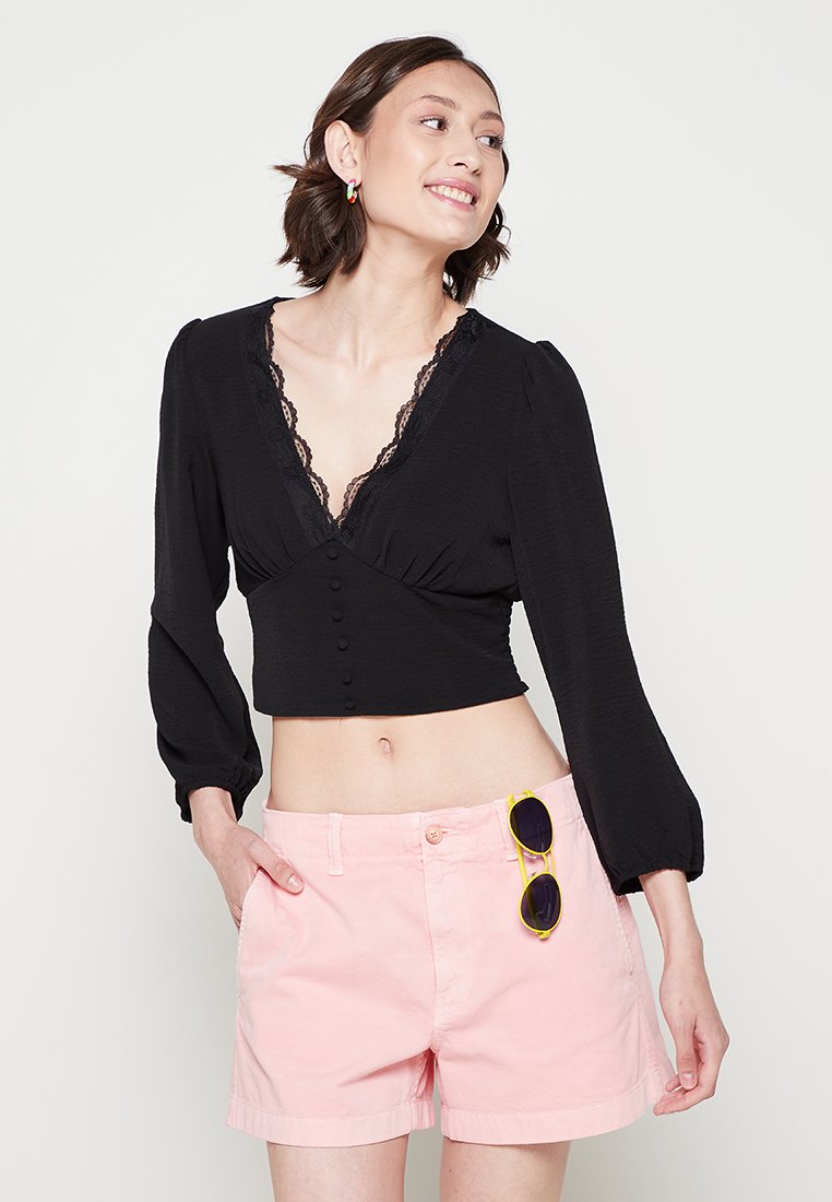 Introducing the Only casual/elegant women's blouse, perfect for the spring/summer season. This stylish black blouse is versatile and can be dressed up or down for any occasion. The flowy fit and sophisticated design make it a must-have piece for your wardrobe. Stay chic and comfortable in this timeless staple from Only.