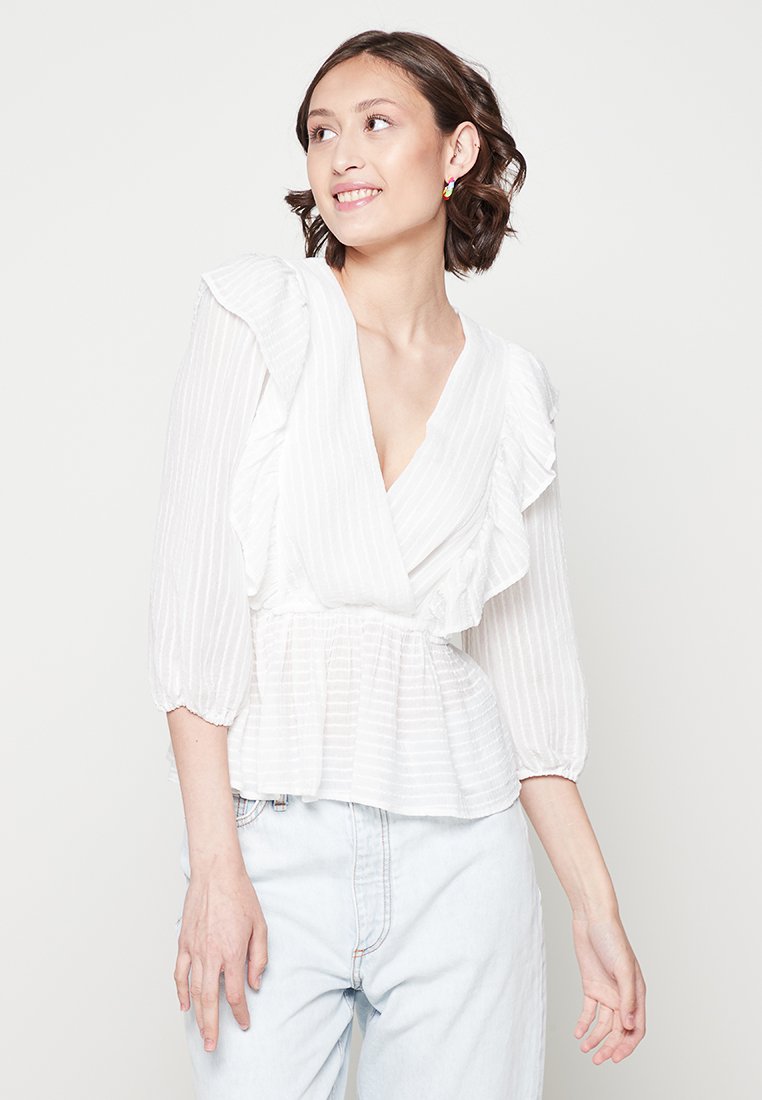 Introducing the versatile and chic White Casual/Elegant Women's Blouse from Only. Perfect for the Spring/Summer season, this stylish top effortlessly combines comfort and sophistication. Whether paired with jeans for a casual look or dressed up with a skirt for a more elegant ensemble, this blouse is a must-have addition to your wardrobe. Stay cool and classy in this timeless piece.