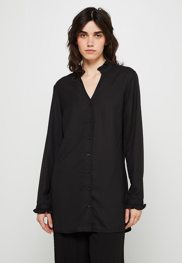 Stay effortlessly chic with this versatile black blouse from Pieces. Perfect for the Spring/Summer season, this casual yet elegant top is a must-have for any woman's wardrobe. Whether paired with jeans for a laid-back look or dressed up with a skirt for a night out, this blouse is sure to make a statement. Add a touch of sophistication to your outfit with this stylish piece.