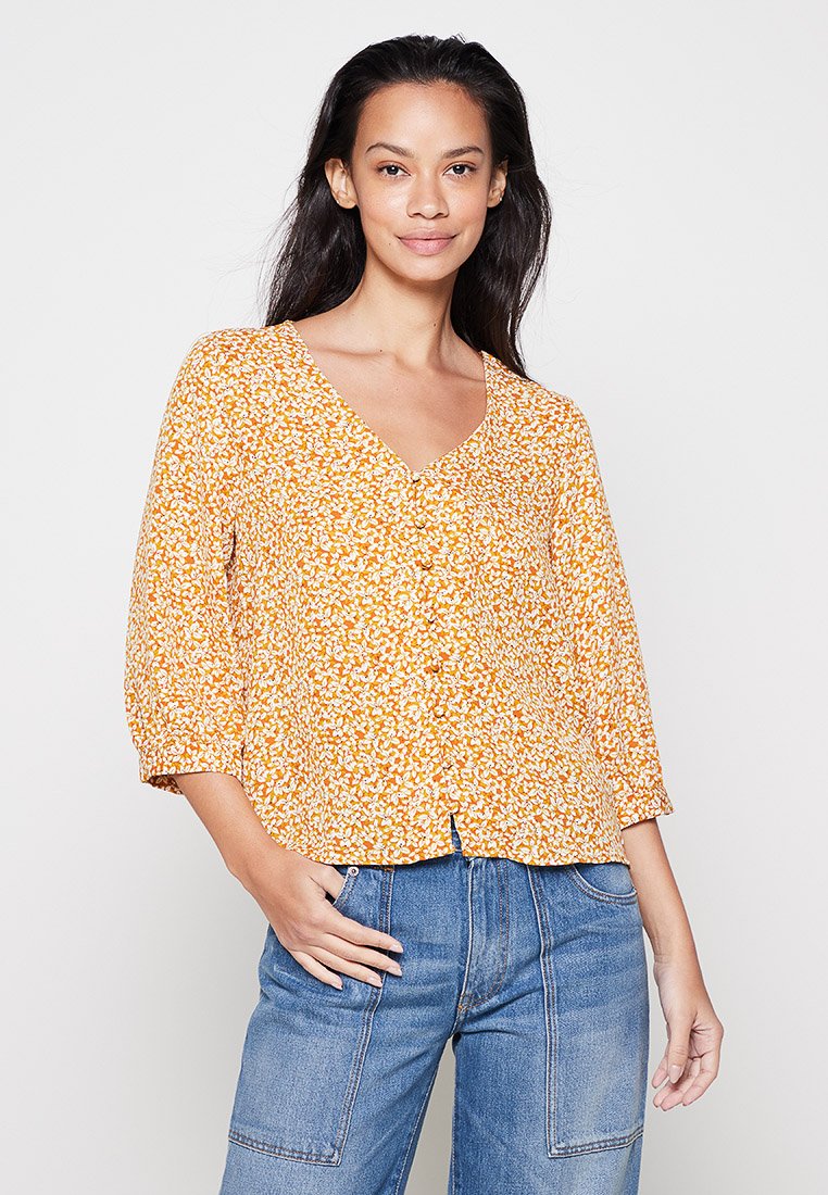 Stay chic and casual in this JDY women's blouse, perfect for the Spring/Summer season. The elegant yellow color adds a pop of brightness to any outfit. With its versatile style, this blouse is ideal for any occasion. Add a touch of sophistication to your wardrobe with this must-have piece.