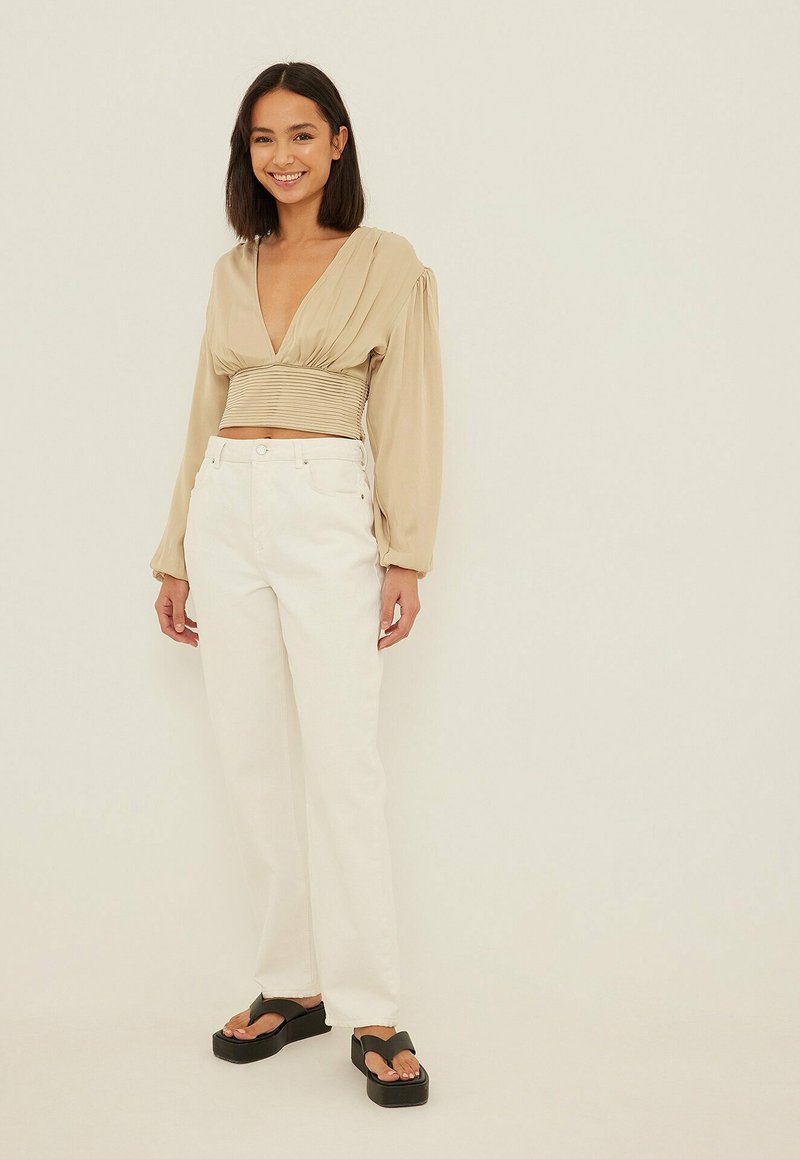 Stay effortlessly chic in this Casual/Elegant NA-KD blouse for women. Perfect for the Spring/Summer season, the beige color adds a touch of sophistication to any outfit. Whether paired with jeans or a skirt, this blouse is versatile and stylish. Elevate your wardrobe with this must-have camicetta.