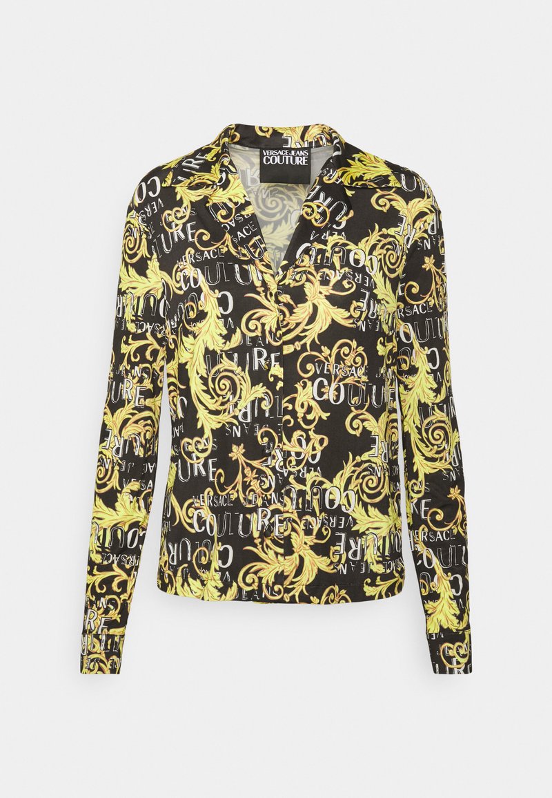 Stay effortlessly chic in this Casual/Elegant black blouse from Versace Jeans Couture. Perfect for the Spring/Summer season, this versatile piece can be dressed up or down for any occasion. Crafted with quality materials and a flattering silhouette, the camicetta is a must-have addition to your wardrobe. Elevate your style with this timeless wardrobe staple.