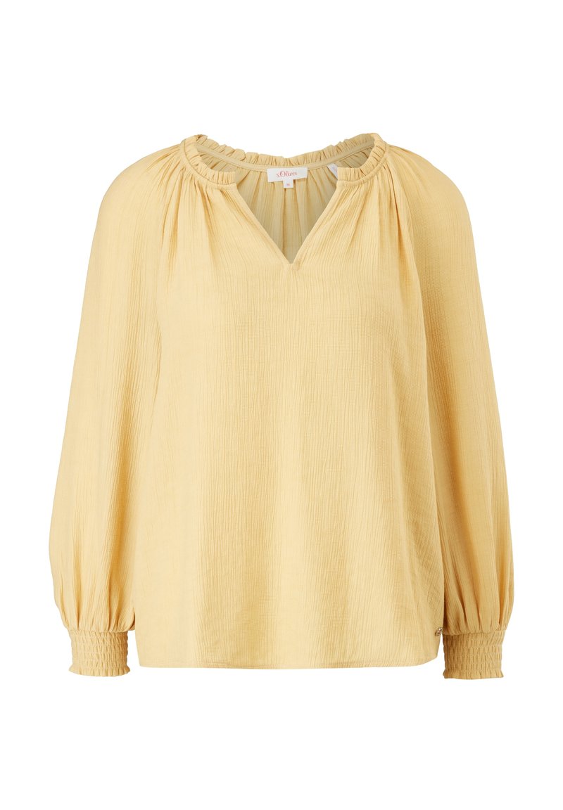 Stay chic and stylish with this s.Oliver Women's Casual/Elegant Yellow Blouse. Perfect for the warmer months of Spring/Summer, this versatile top can be dressed up or down for any occasion. The delicate fabric and flattering fit make it a must-have addition to your wardrobe. Add a touch of sunshine to your look with this vibrant yellow blouse from s.Oliver.