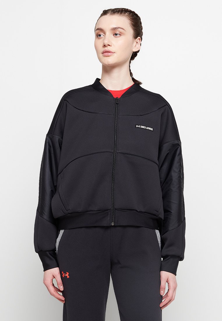 Stay cool and chic in the Under Armour Casual/Elegant Women's Bomber Jacket. Perfect for the warm Spring/Summer months, this black jacket features a sleek design that effortlessly combines style and comfort. Whether you're running errands or meeting friends for brunch, this versatile piece is ideal for any casual yet elegant outfit. Elevate your wardrobe with this must-have staple from Under Armour.