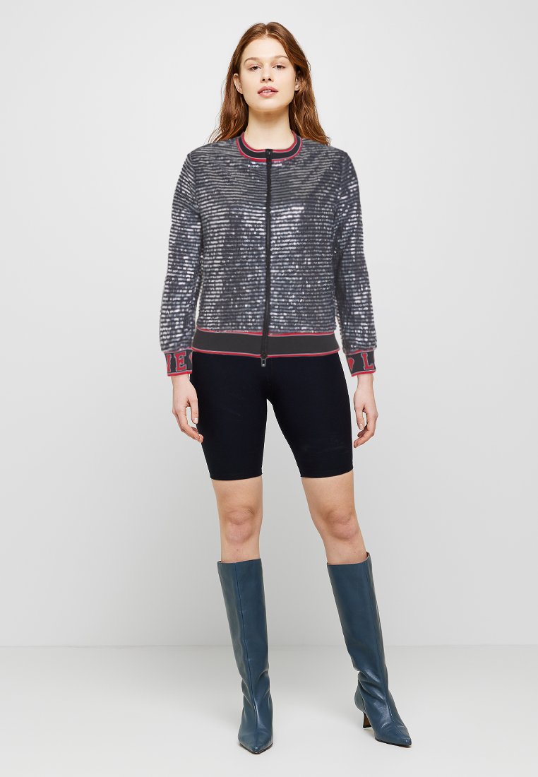 Introducing the Love Moschino Casual/Elegant Women's Bomber Jacket in a vibrant Multi color, perfect for Spring/Summer. This stylish piece effortlessly combines casual and elegant elements for a versatile look. Whether you're running errands or attending a garden party, this jacket is a must-have for any fashion-forward woman. Elevate your wardrobe with this chic and trendy Love Moschino bomber jacket.