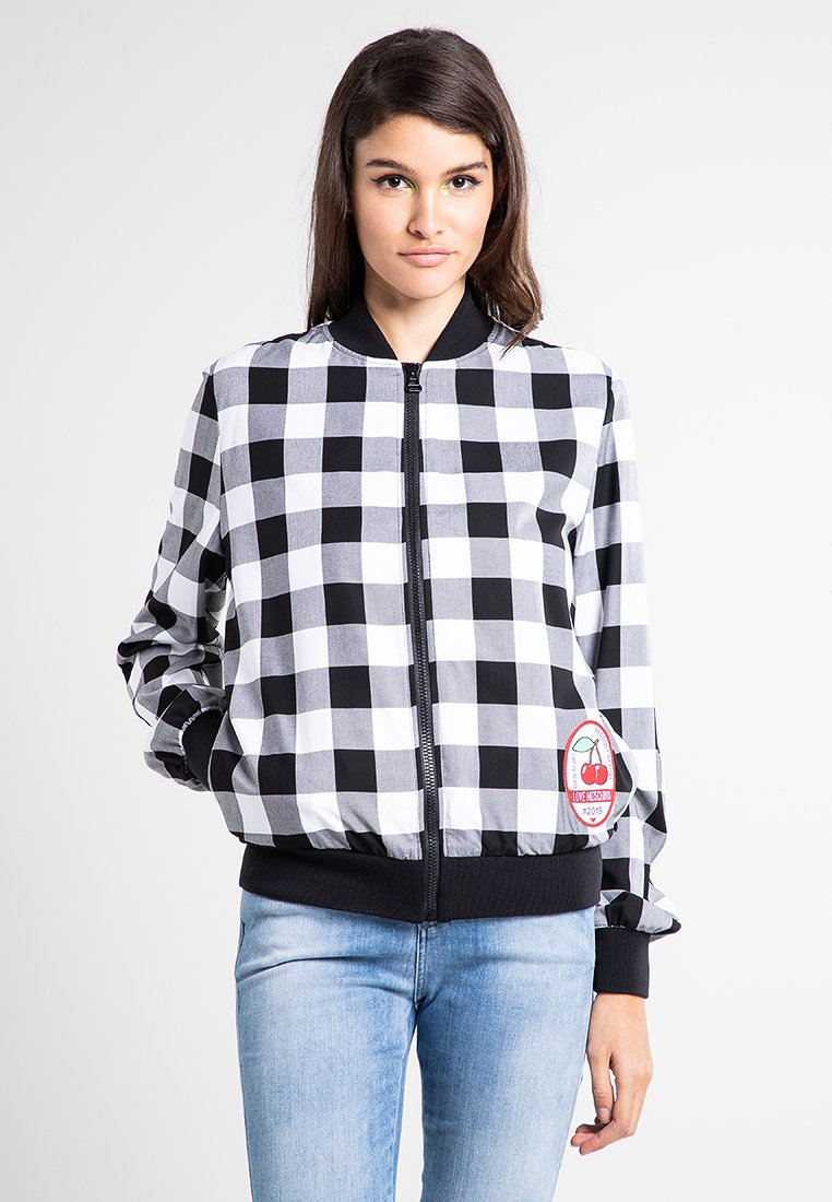 Elevate your Spring/Summer wardrobe with this versatile Love Moschino bomber jacket for women. The perfect combination of casual and elegant, this black jacket is ideal for any occasion. Stay stylish and comfortable in this must-have piece from Love Moschino. Perfect for adding a touch of sophistication to any outfit.