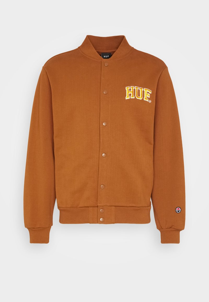 Introducing the HUF Women's Casual/Elegant Bomber Jacket in a stylish Brown hue. Perfect for the Spring/Summer season, this versatile piece effortlessly combines comfort and sophistication. Elevate any outfit with this timeless wardrobe essential from HUF. Ideal for adding a touch of chic flair to your everyday look.