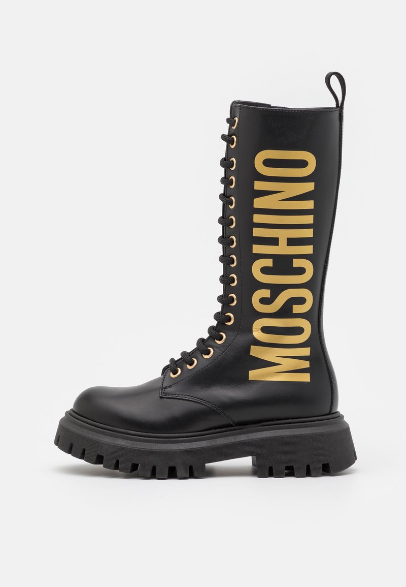 Stay stylish and comfortable this Autumn/Winter season with Moschino's Casual Boots for Women. These lace-up boots in classic black are perfect for everyday wear. Keep your feet warm and look chic with these trendy boots. Perfect for casual outings or running errands.