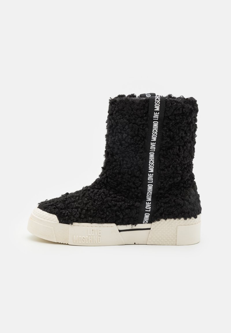 Elevate your casual style this autumn/winter season with Love Moschino's Black Platform Boots. These sleek boots are perfect for adding an edgy touch to any outfit, while keeping you cozy and stylish. The chunky sole provides comfort and the black color is versatile for any wardrobe. Step out in confidence with these chic boots.