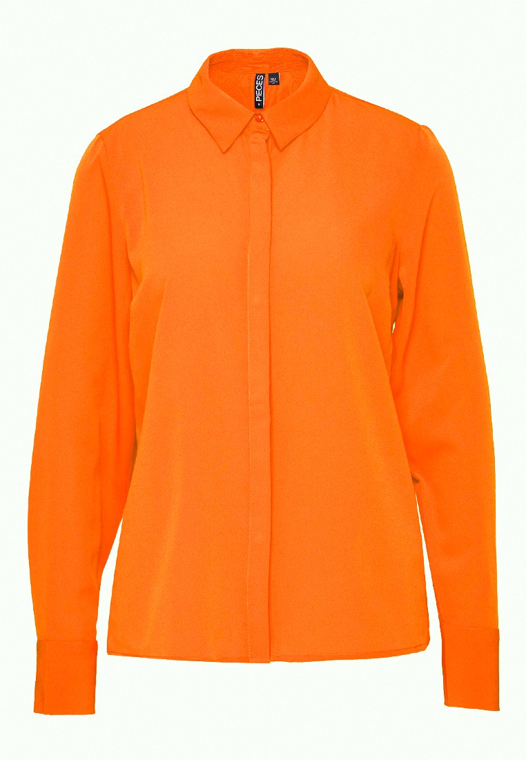 Stay stylish and comfortable this Spring/Summer with this casual yet elegant shirt from Pieces. In a vibrant orange color, this versatile piece can easily be dressed up or down. Perfect for any occasion, this shirt is a must-have for any woman's wardrobe. Add a pop of color to your look with this chic and on-trend piece.
