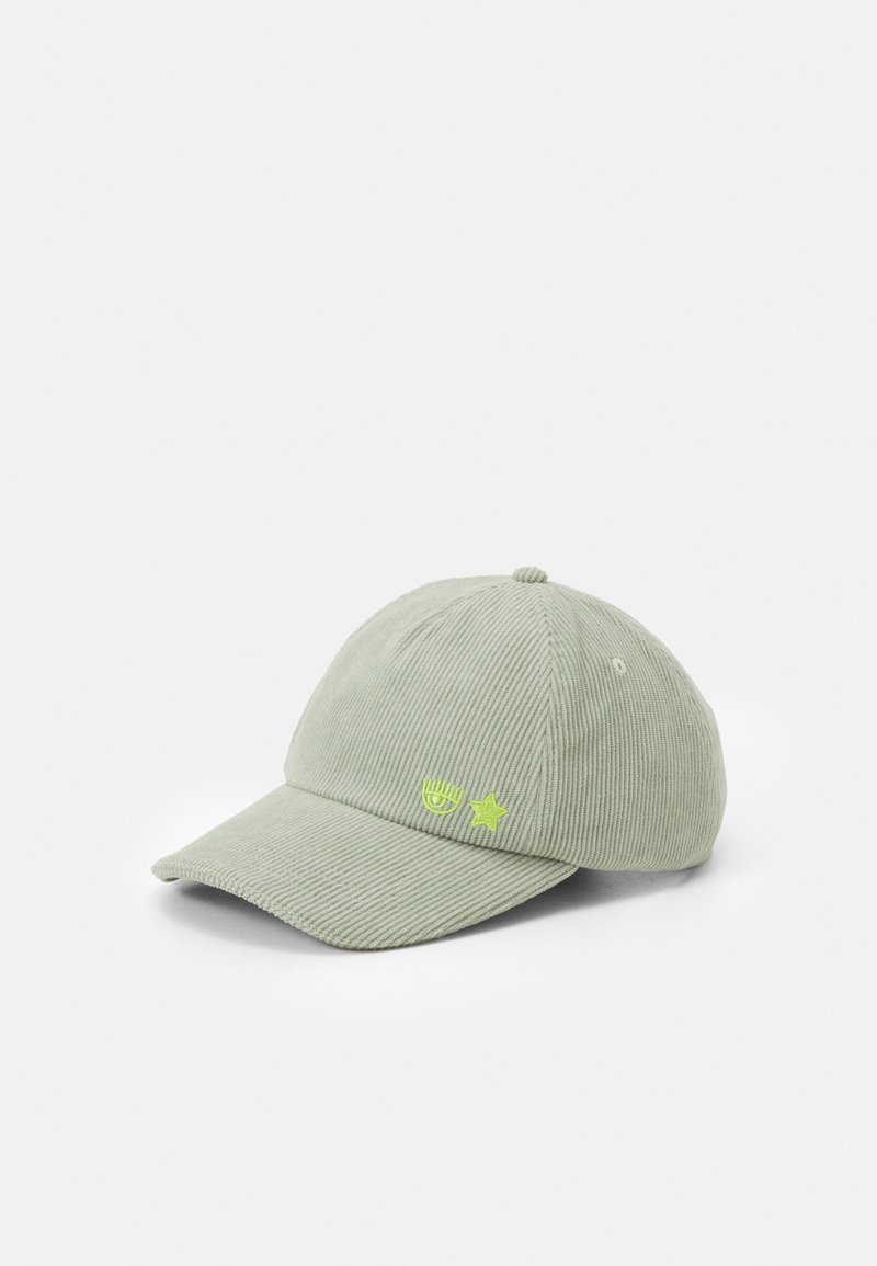 Elevate your summer look with this stylish Green CHIARA FERRAGNI baseball cap. Perfect for dressing up a casual outfit or adding a touch of elegance to your attire. Made for the chic woman who values comfort and style. This cap is a must-have accessory for the warm seasons.