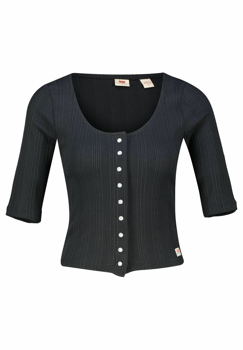 Stay stylish and comfortable this Spring/Summer season with Levi's® Women's Casual/Elegant Black Cardigan. Made for the modern woman on the go, this versatile piece can easily be dressed up or down for any occasion. Crafted from high-quality materials, it's the perfect addition to any wardrobe. Elevate your look with this timeless black cardigan from Levi's®.