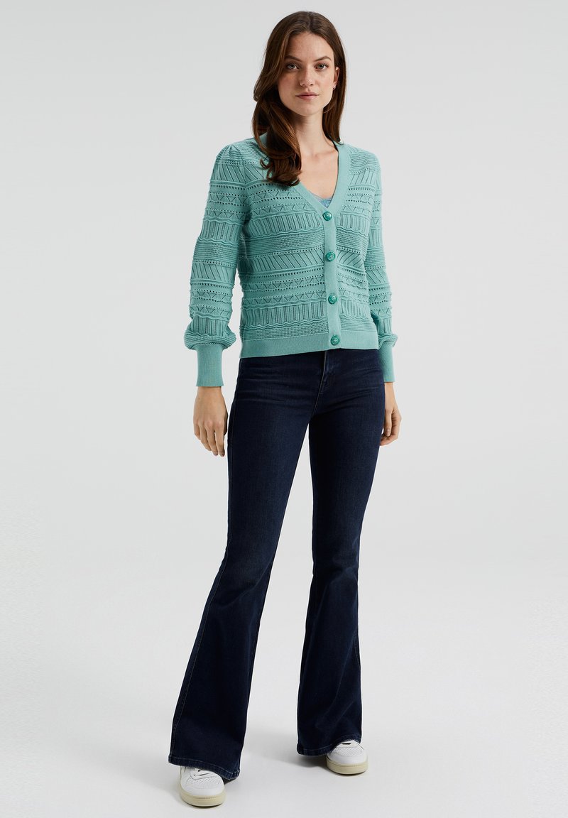 Stay chic and comfortable in this Casual/Elegant Green cardigan from WE Fashion. Perfect for the Spring/Summer season, this versatile piece is a must-have for any woman's wardrobe. Whether you dress it up or down, this cardigan adds a touch of sophistication to any outfit. Upgrade your style with this modern and trendy piece from WE Fashion.