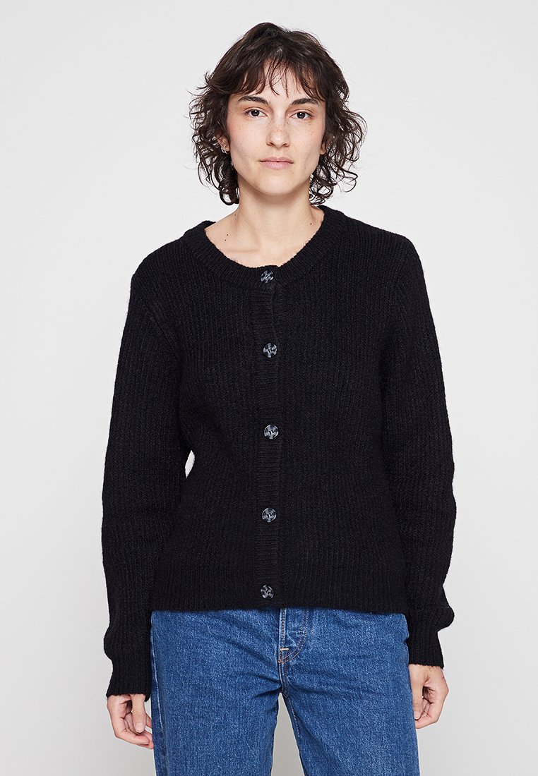 Stay chic and comfortable in this black cardigan from Cream. Perfect for the warmer months, this versatile piece effortlessly blends casual and elegant style. Whether paired with jeans or a dress, this cardigan is a must-have addition to your spring/summer wardrobe. Elevate your look with this sophisticated and stylish piece.