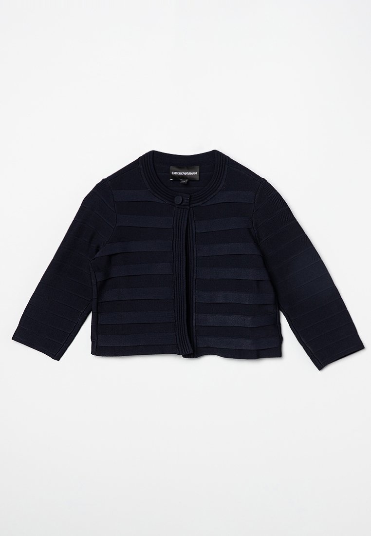 Stay cool and chic this Spring/Summer season with this casual yet elegant blue cardigan from Emporio Armani. Perfect for any occasion, this versatile piece is a must-have for any stylish woman. Its lightweight fabric and flattering silhouette make it a go-to choice for layering on those breezy days. Elevate your look with this Emporio Armani cardigan and stand out in style.