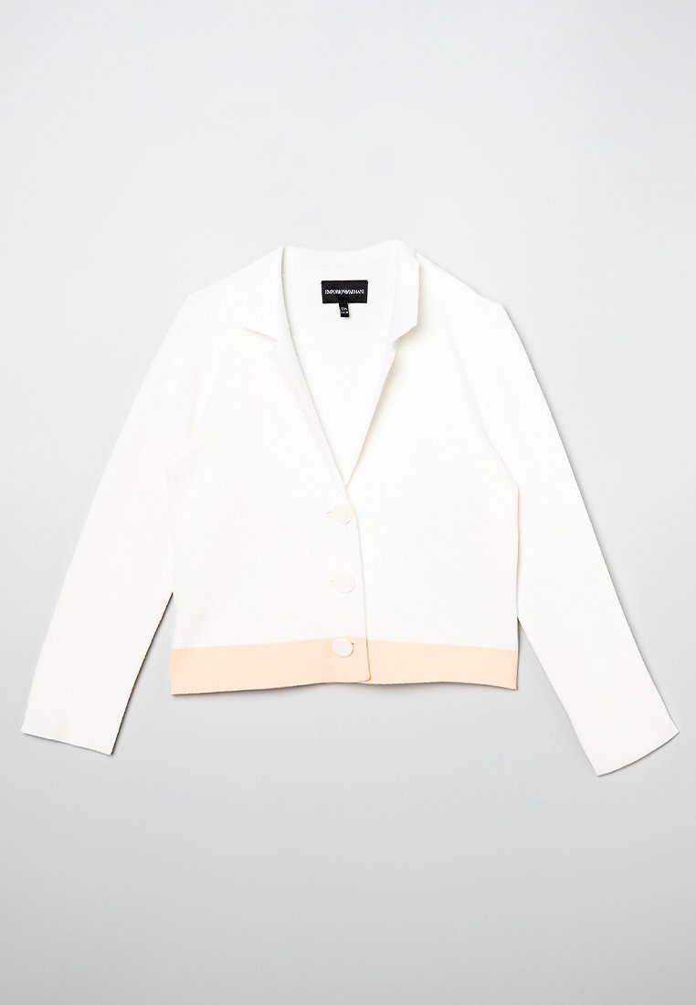 Stay chic and comfortable this Spring/Summer with this Casual/Elegant white cardigan from Emporio Armani. Perfect for any occasion, this versatile piece effortlessly combines style and sophistication. Whether you're running errands or attending a brunch, this cardigan will elevate your outfit. Add a touch of luxury to your wardrobe with this must-have piece.